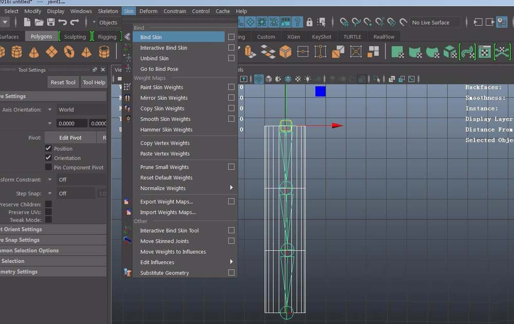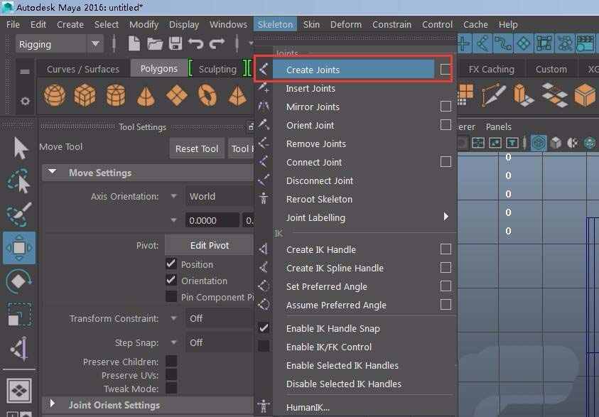 4、點擊skeleton----create joints創(chuàng)建骨骼