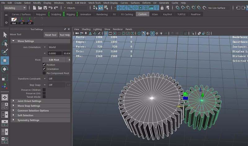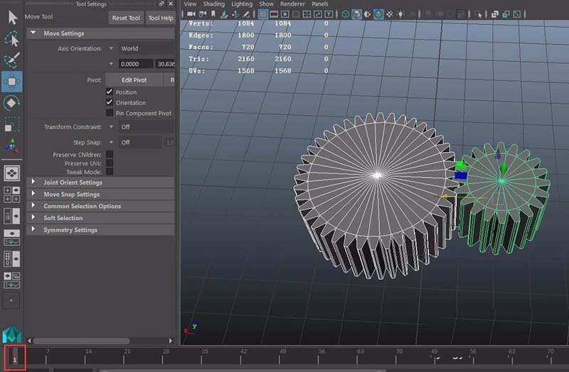 之前我們介紹過maya中建模齒輪模型的方法,今天我們就來看看兩個尺寸轉動動畫效果的制作方法。