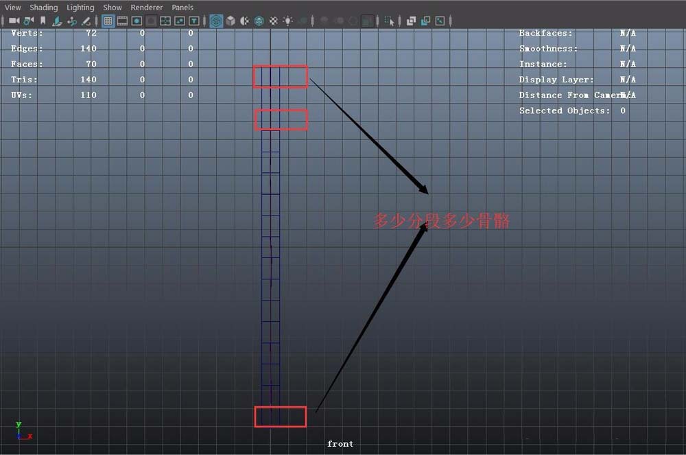 4、進入到前視圖,使用骨骼工具創建骨骼