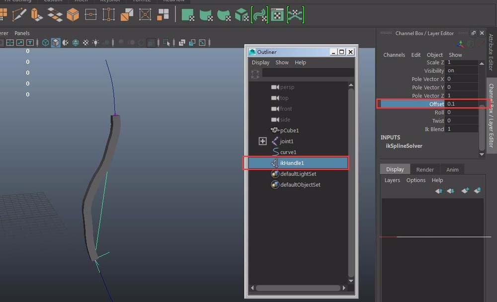 10、打開大綱視圖,選擇IKhandle,調節它的offset即可