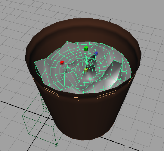 4、新建一個圓柱,很低的 作為花盆里的土,用雕刻工具雕刻下凹凸,然后放到盆子里