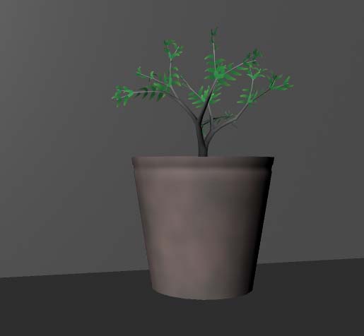 5、用maya自帶的畫筆畫出一棵樹,通過各個視圖擺放到花盆里,渲染效果就出來了哦,盆栽完成