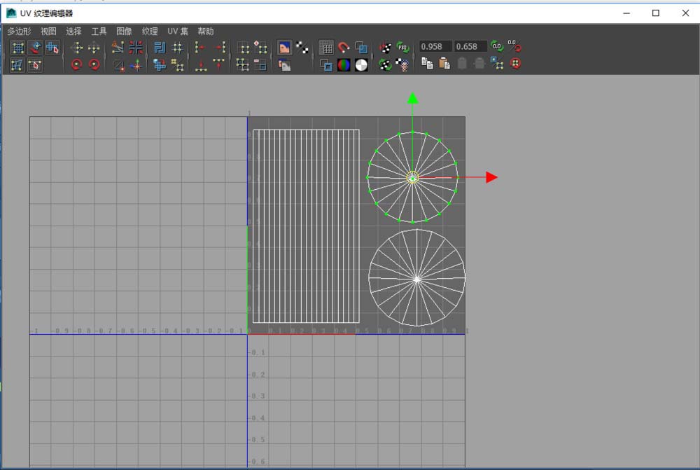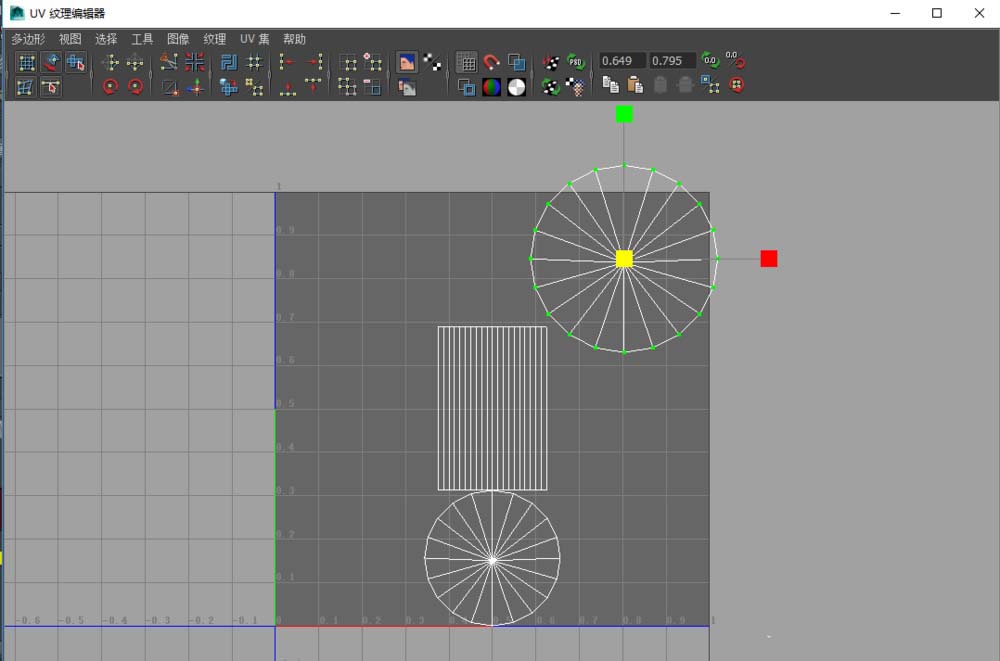 5、左擊點住方向手柄中心點(下圖紅框處)即可拖動uv實現分離。
