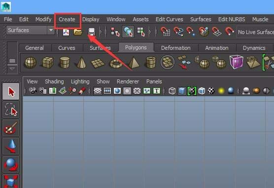 2、打開(kāi)maya之后在菜單里找到create選項(xiàng),如圖所示: