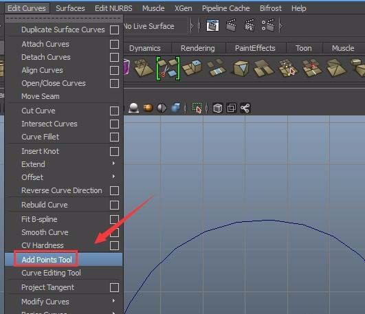 6、點(diǎn)擊edit curves選項(xiàng)在其下拉菜單里找到add points tool選項(xiàng),如圖所示: