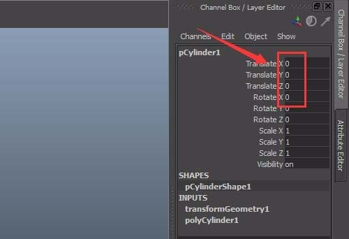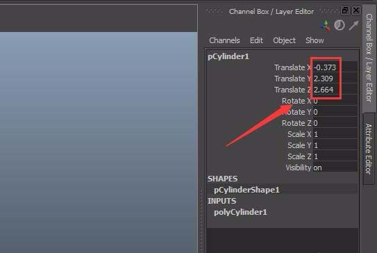 5、創建圓柱體之后,我們在channel box里可以看到此時都有參數,如圖所示: