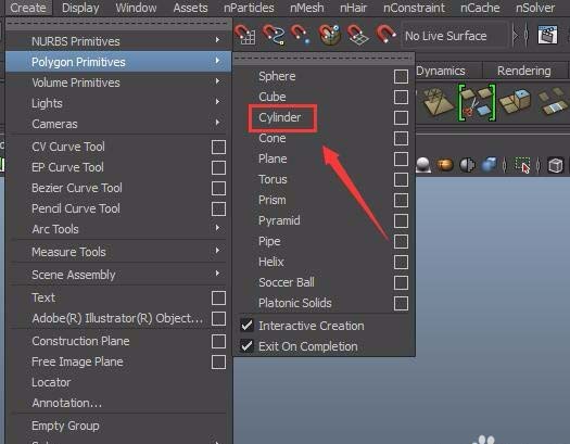 3、點擊polygon primitives選項在其內找到cylinder選項,如圖所示: