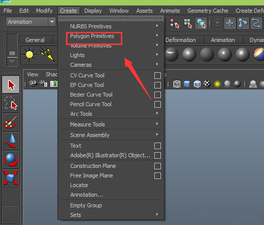 2、在該界面內找到create菜單里的polygon primitives選項,如圖所示: