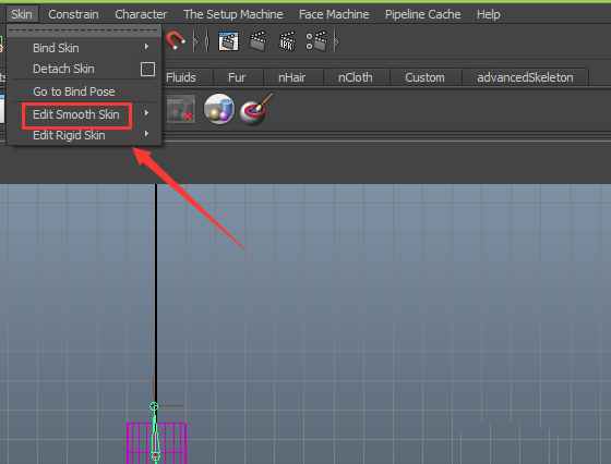13、再在skin菜單里找到edit smooth skin選項,如圖所示:
