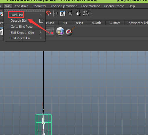 10、點擊skin菜單,在其子級菜單里找到bind skin選項,如圖所示: