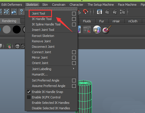 5、點擊skeleton菜單在其子級菜單里找到joint tool命令,如圖所示: