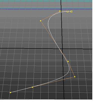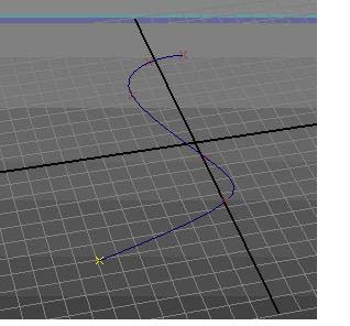 使用CV曲線工具在場景中創建一條曲線(在場景中點擊鼠標左鍵進行自由創建),單擊回車鍵就可以在場景中生成一條曲線,單擊鼠標右鍵切換到曲線的CV控制點。