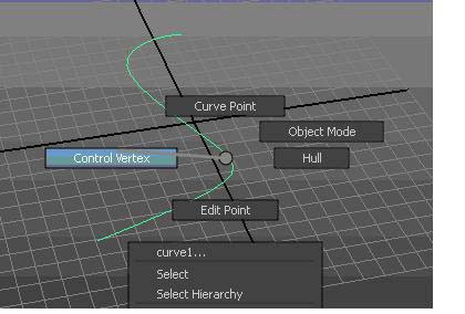 曲面的第一個CV控制點即曲線的起始點,第二個控制點式以字母U顯示,用來覺得曲線的方向,以及將來旋轉曲面的方向,對CV控制點的編輯可以改變曲線的一個整體形態,還可以進行相應的插入刪除CP點操作。F8鍵切換到曲線的物體模式。