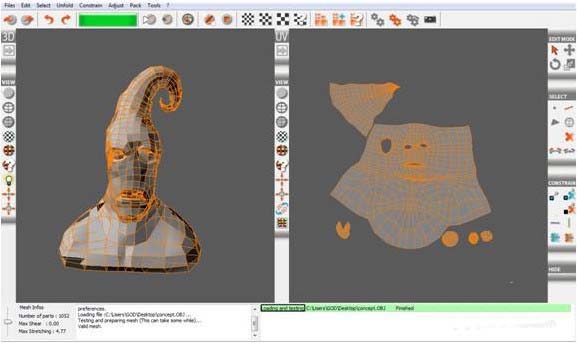 3、把基礎(chǔ)網(wǎng)格導(dǎo)入Unfold 3D,展UV的軟件。除了令人難以置信的快速,它可以完全控制UV,簡直不能太好用。