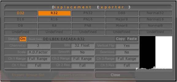 1、首先,從ZBrush導(dǎo)出幾個圖,通常會導(dǎo)出32位圖,因為它們使用起來非常簡單,并提供最佳效果,這里使用位移出口3與圖所示的設(shè)置。