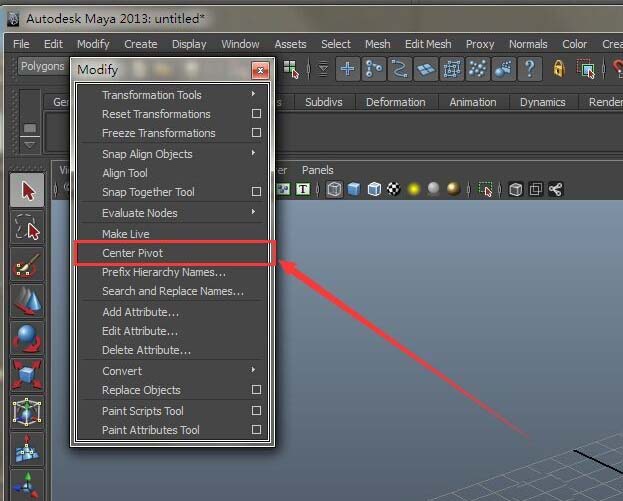 3、再點擊下拉菜單的center pivot,具體為止如圖
