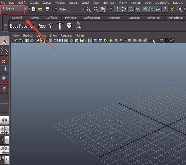 2、在這個界面內將模塊切換為polygons模塊,如圖所示: