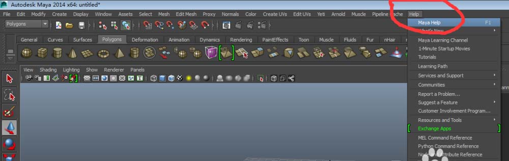 3、打開Help>Maya Help,網頁上就有了