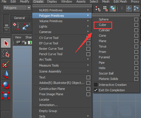 3、點擊polygon primitives選項,在其內找到cube選項,如圖所示: