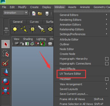 4、在window菜單里找到uv texture editor選項,如圖所示: