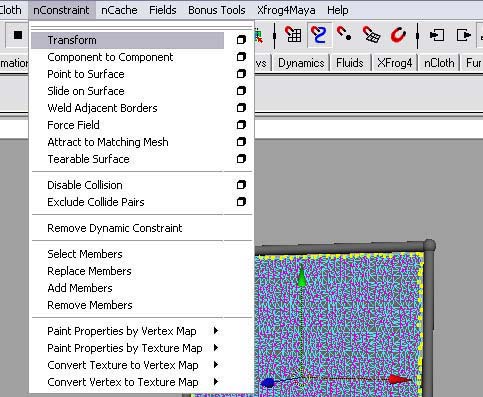 現在我們需要防止這種布料從框架中脫落。右鍵單擊布料,進入頂點模式,選擇所有的邊界頂點,然后進入nConstraint>transform。