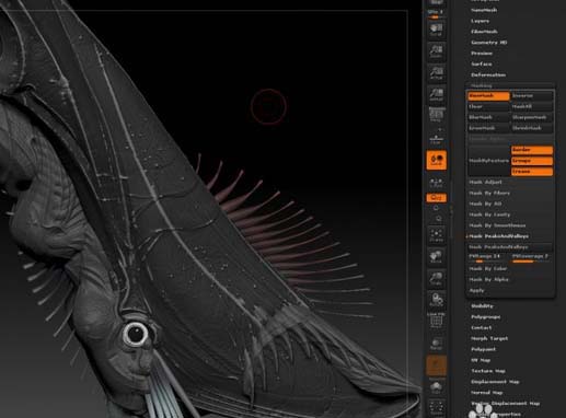 LazyMouse是創建沿表面較長的、清晰筆觸的一種神奇工具—在銳化生物殼邊緣的時候經常用到,如果將step設置為0.7左右,選擇一個alpha,便可以創建一些非常酷的模式。