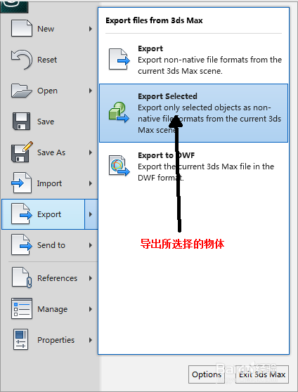 2、選擇上圖中所有的幾何體,然后直接導出FBX,見下圖。