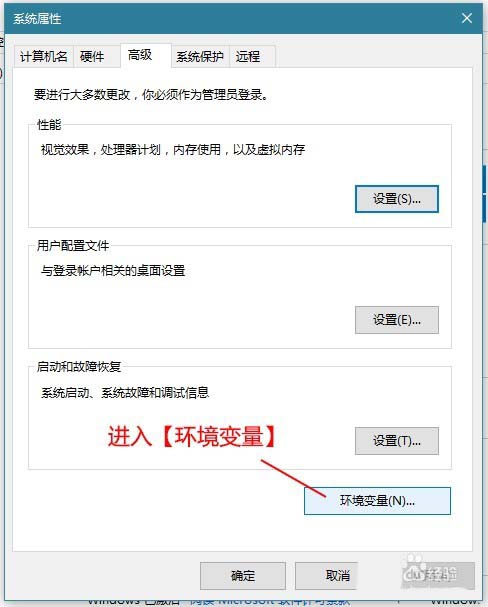3、在【系統(tǒng)屬性】面板的【高級】選項卡下點擊【環(huán)境變量】進入【環(huán)境變量】面板。