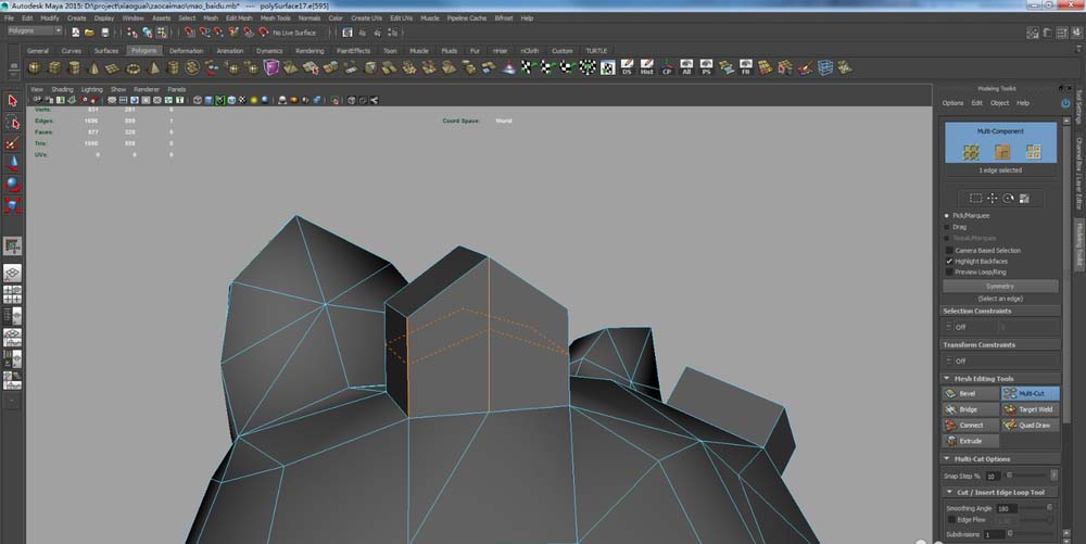 3、右側面板中找到Multi-Cut按鈕,選擇好模型,點擊Multi-Cut按鈕會看到鼠標變成了一把小刀的形狀,將鼠標移動到模型上,會看到靠近點、線、面會被標記成紅色。按住鼠標左鍵,就可以切割了,切割的線標記為黃色,切割好了之后按鼠標右鍵確定。就做好了模型的切割。切割的線都是可以再次編輯的。