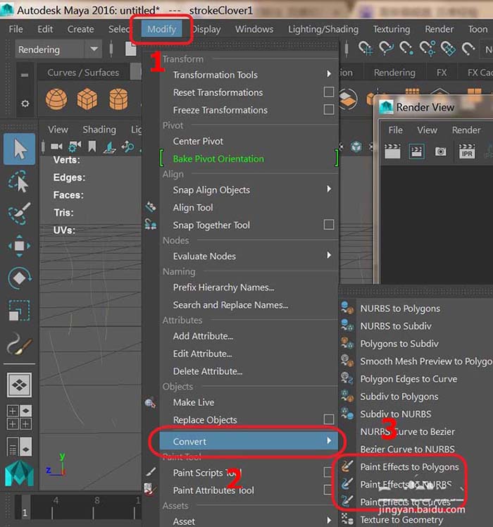 1、將物體 Paint Effects 轉換成多邊形(Poly),不過還有方法(NURBS)看你們自己的要求了。