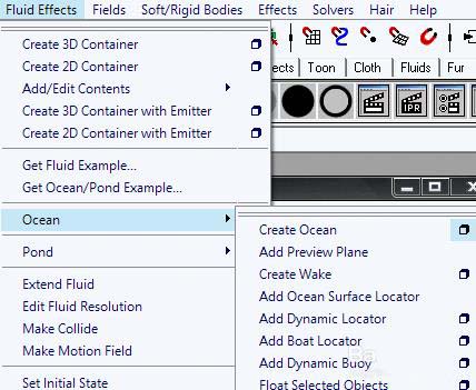 2、從頂部面板,到流體效果>海洋>創建海洋,然后單擊選項框,如下面圖所示。