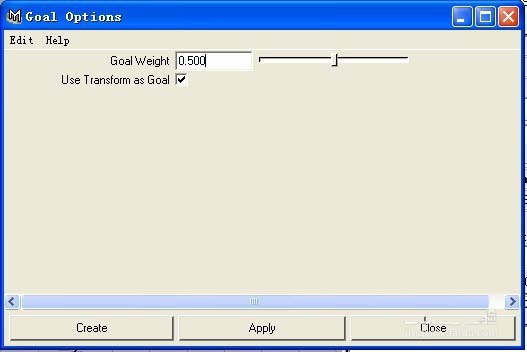 4、GOAL WEIGHT表示你的目標物體,本例中也就是LOCATOR對粒子物體的目標權重設置,如果設為1,那么離子完全跟隨目標物體移動。下面USE TRANSFORM GOAL,是詢問你粒子是否跟隨目標物體的TRANSFORM,包括目標物體的CVs,vertices,or lattice points,如圖