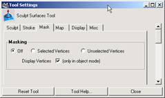 ● selected vertices :經由選取的頂點作為遮罩,當對這些頂點應用 artisan 工具 時,這些頂點的位置、權重和腳本屬性都不會發生變化。