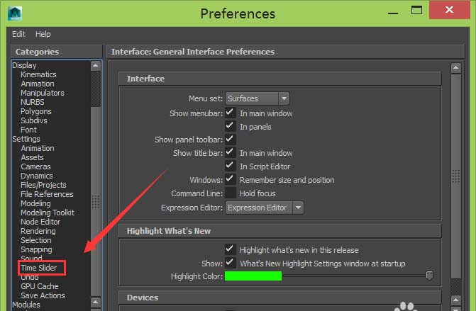 6、點擊time slider選項,設置其參數,其參數設置如圖所示: