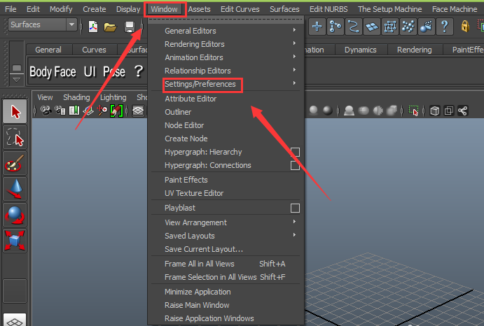2、在該界面內找到widow選項,點擊window選項在其子級菜單里找到setings/preferences選項,如圖所示: