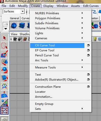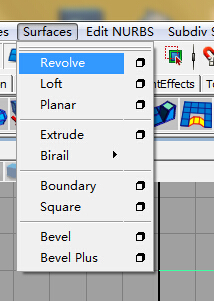 第一步:打開MAYA選擇工程項目板surfaces(曲面)