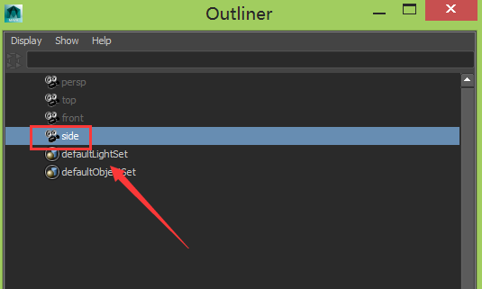 4、點擊outline選項,在其內選擇side攝像機,如圖所示: