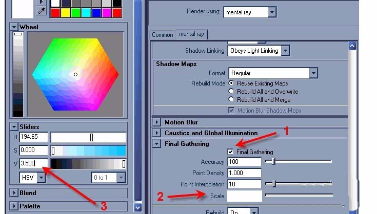 13、打開渲染設置下的Final gathering渲染。加強Anti-Aliasing (消鋸齒)的值