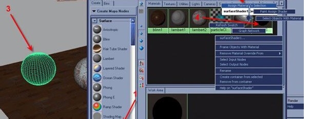 8、在 Hypershade建立一個Surface Shader 材質,然后在你的工作區里就能看到它。選擇你復制的物體,新建Surface Shader 材質,從彈出的菜單中選 Material To Selection