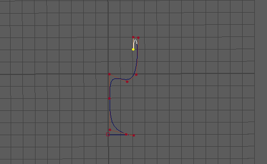 2、在屏幕的中心,沿著一條軸繪制高腳杯的一條側邊。通過修改點的位置,調整這條曲線。兩個點可畫一條直線,三個點畫一條曲線。