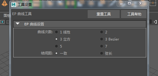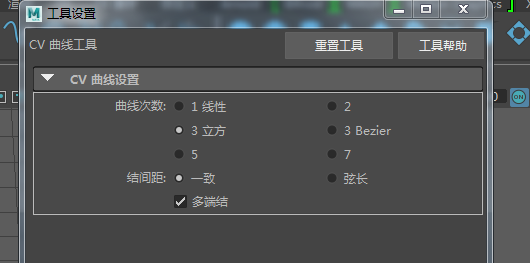 1、打開軟件,點擊“創建”——>“曲線工具”——>“CV曲線”。默認參數即可。