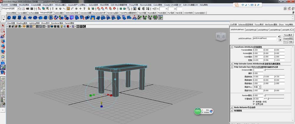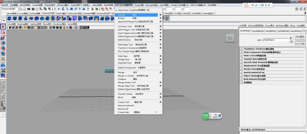 7、選擇工具欄里的編輯網格--擠出工具,這不很關鍵,我們要開始做桌子腿了哦,如圖所示