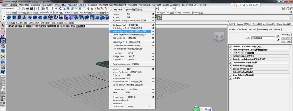 3、選擇工具欄里的編輯網格--插入循環邊工具,如圖所示