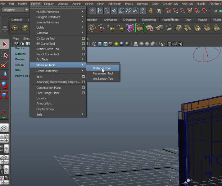 3、在create菜單下 找到 measure tools。選擇延伸菜單中的 distance tool單擊它