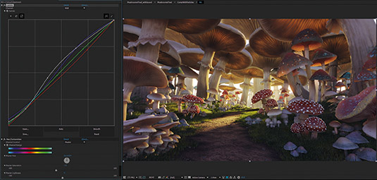 一旦所有的元素聚集在一起,是時候來調整色彩和對比度。它可以幫助我們去思考渲染輸出的動態范圍和有用的信息,而不是直接試圖得到最終的色彩和直接用MAYA烘托。AE具有更好更快捷的操縱和顏色適配功能,雖然也有很多的工具和很方便的插件,但是都沒有能打敗經典的RGB曲線調整。