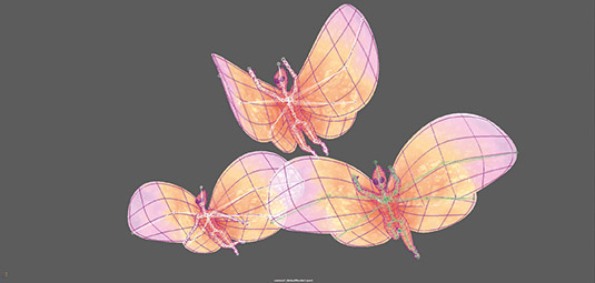 精靈們能給場景注入一些靈性。我們可以制作出一個模型和它的動畫,然后通過調整比例和移動關鍵幀生成兩個更多的變體。你可以僅直接用關節動畫完成,因為這個例子里不需要用到反向運動。設置準備好后,你就可以用替代工具將群組替換為精靈群組。這個項目文件中包含了其中一個小精靈的一個額外特寫動畫。