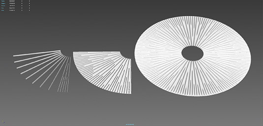 這個場景中有三個粒子系統:精靈群組,火花,以及浮塵。主要的精靈群組粒子的設置是最復雜的,必須遵循一個特定的軌道。你可以使用Maya中的體積曲線場,并以牛頓力場作為引導來保持精靈群的形狀。這個曲線需要設置一系列相當密集的控制點來保持光滑的的運動軌跡。