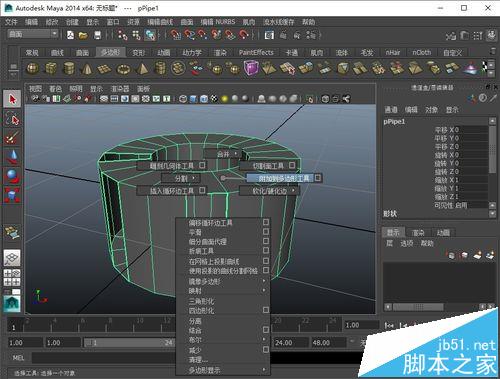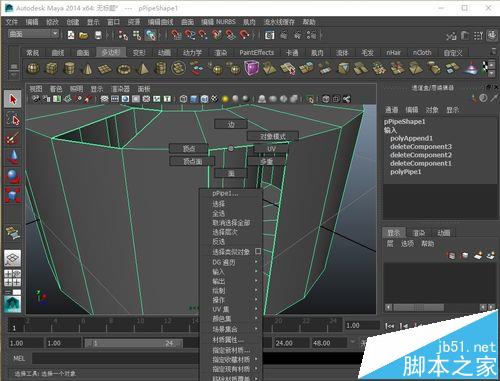 1、選擇模型,長按鼠標右鍵拖拽,找到”附加到多邊形工具“命令,點擊執行命令。