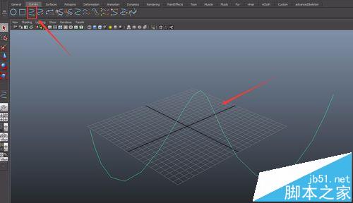 2、先在上面的常用工具里找到curves選項,在curves里找到EP curve,在視圖里繪制一條曲線,如圖所示:
