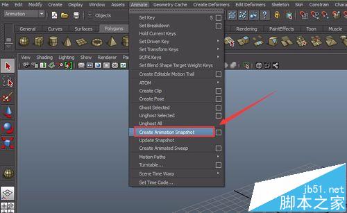 6、再次找到上面的animate菜單,在animate菜單下找到create animation snapshot命令,如圖所示: